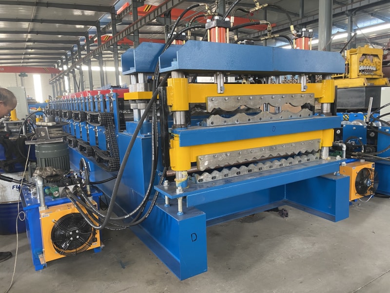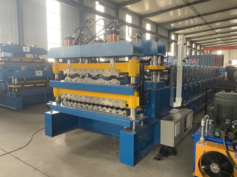 雙層金屬屋面瓦成型機(jī)主要用于生產(chǎn)金屬屋面瓦,一臺(tái)機(jī)器可以生產(chǎn)兩種不同的屋面瓦,機(jī)器是根據(jù)客戶想生產(chǎn)的屋面瓦類(lèi)型定制的。